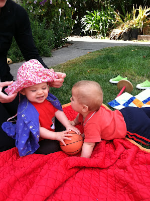 This afternoon, Meredith came over with her little girl, Sasha, who is nearly 9 months old. Kai and Sasha had a nice time lounging around on the grass in the back yard.