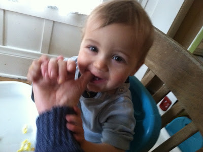 He's not content with just moving horizontally. He continues to scale chairs, boxes, our legs, the cat. This behavior is new for us as parents--Xander was not a scaler. I'm dreading the day when I look in and Kai has climbed the bookshelves.